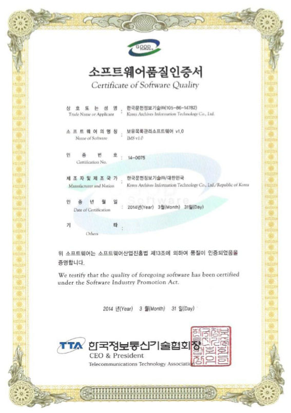- 특수유형기록물관리시스템 ‘감어인’ GS 인증
